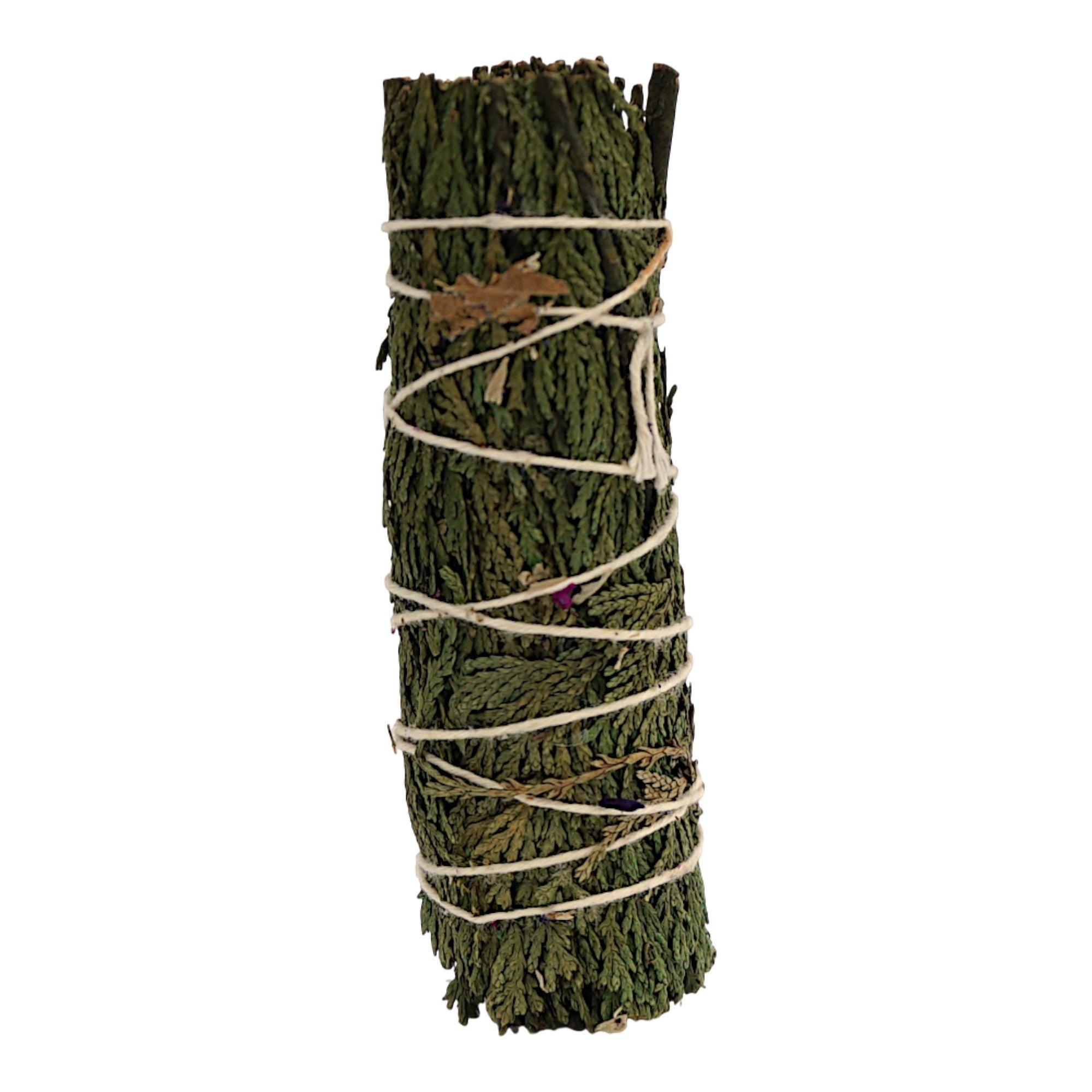 Connect with ancient traditions with these hand-tied Cedar Smudge Wands. Known as the "Mother" and giver of life to many Native tribes, Cedar is a deeply sacred wood used for centuries in rituals and ceremonies. When burned, it releases a sweet, woody, and fresh aroma that is perfect for driving out negative energy and inviting in protection and prosperity.